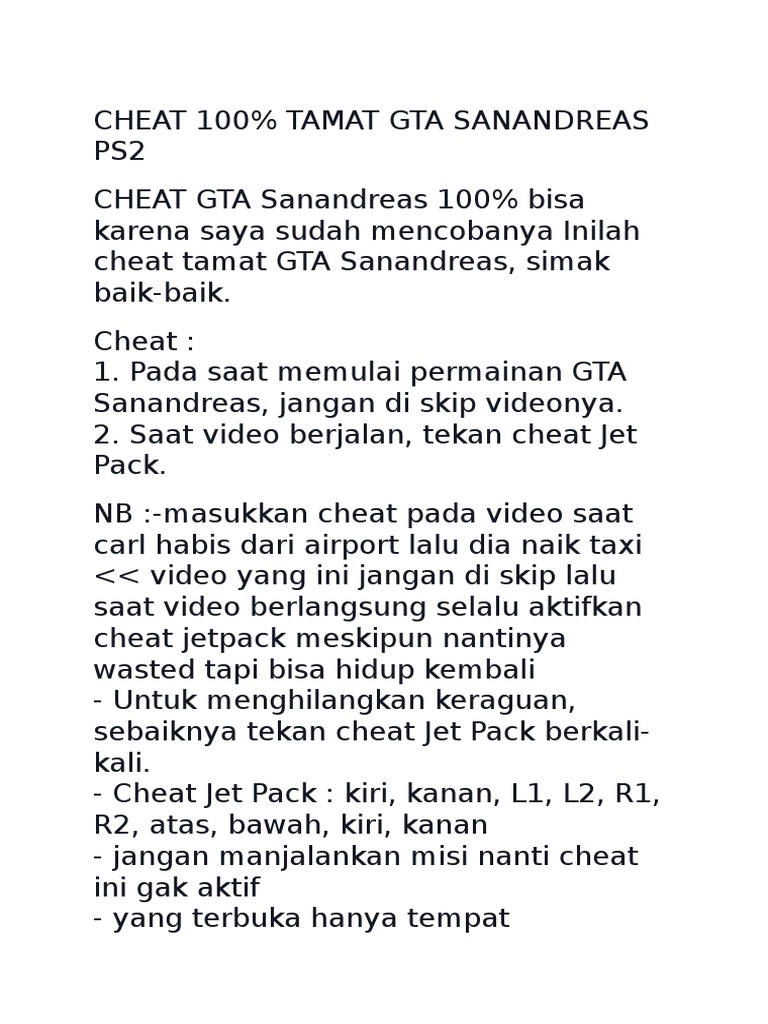 Cheat Gta San Andreas Ps2 Lengkap Dengan Petunjuk Tombolid.scribd.com