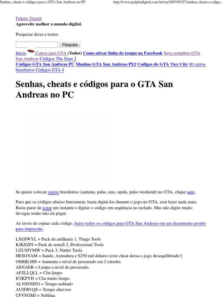 Gta San Andreas Ps2 Todos Os Codigos Truques Senhas Esquemas E Manhas Maismacetes Wl1pydkdxjlj