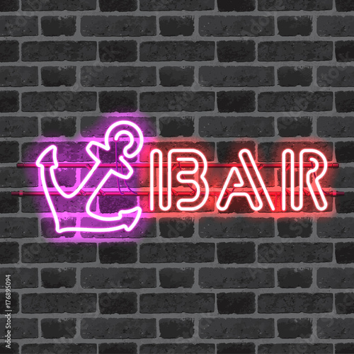 Glowing Neon Bar Sign With Purple Anchor On Brick Wall Background Shining And Glowing Neon Effect All Elements Are Separate Units With Wires Tubes Brackets And Holders Buy This Stock Vector