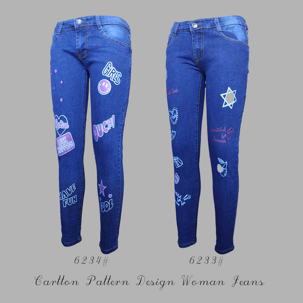 2style Girl Jeans Cartoon Pattern Design Skinny Pants Shopee Philippines